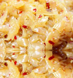 プリプリな食感です!是非試して下さい!劇的に美味しいクラゲです、ビールのおつまみにもピッタリだと思います。クラゲ特有のコリコリした歯ごたえと、ごま油の香ばしさが、とっても良い感じです。