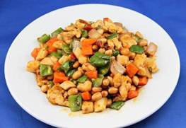 カリッと揚げた鶏肉と大量のとうがらし、ナッツを混ぜて炒めることでそれぞれの食材の香りが引き立っています。 甘さと辛さ両方を楽しむことができ、また辛すぎることもなく、とても食欲を沸かせるメニューです。